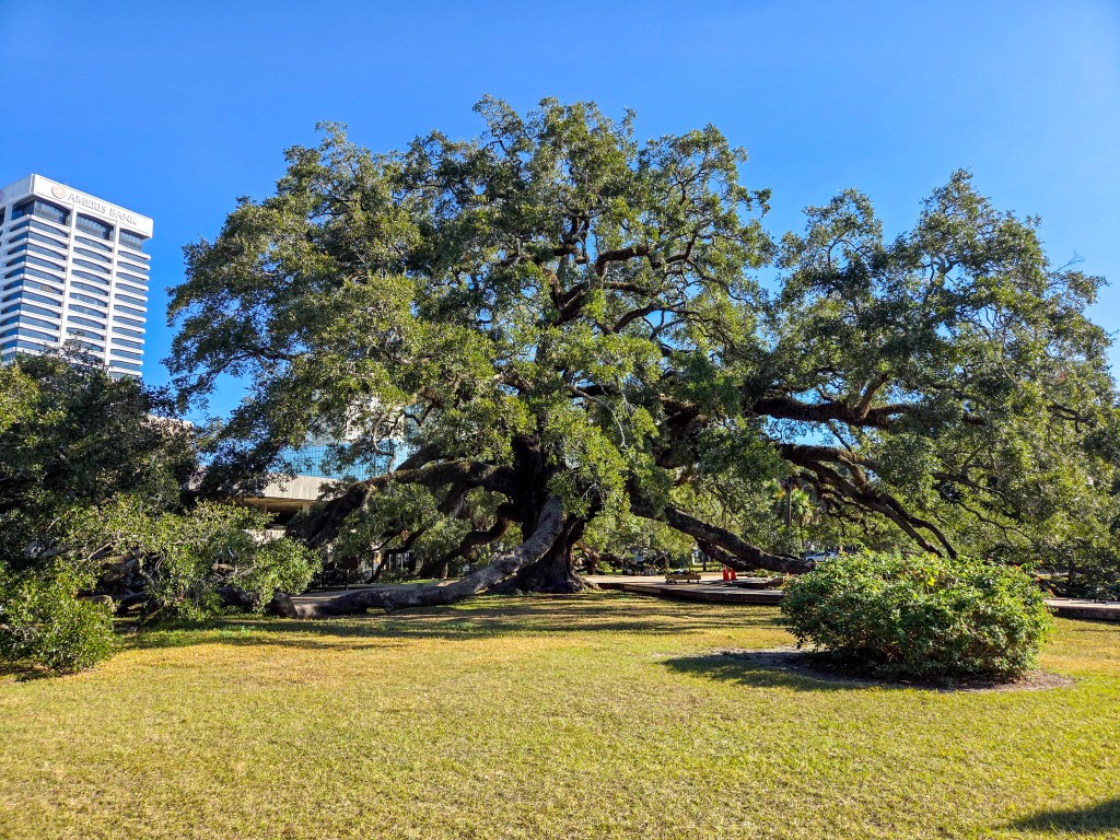 As day 3 started, we decided to make a quick pit stop in Downtown Jacksonville before departing for Savannah, GA. Tucked within Jessie Ball duPont Park is a 250+ year-old Southern Oak, Treaty Oak, which predates the founding of the United States. With a trunk over 25 feet in circumference, standing 70 feet tall, and a sprawling canopy that stretches more than 145 feet wide, its twisting, low-hanging branches give it a dramatic, octopus-like appearance that invites you to linger in its shade.