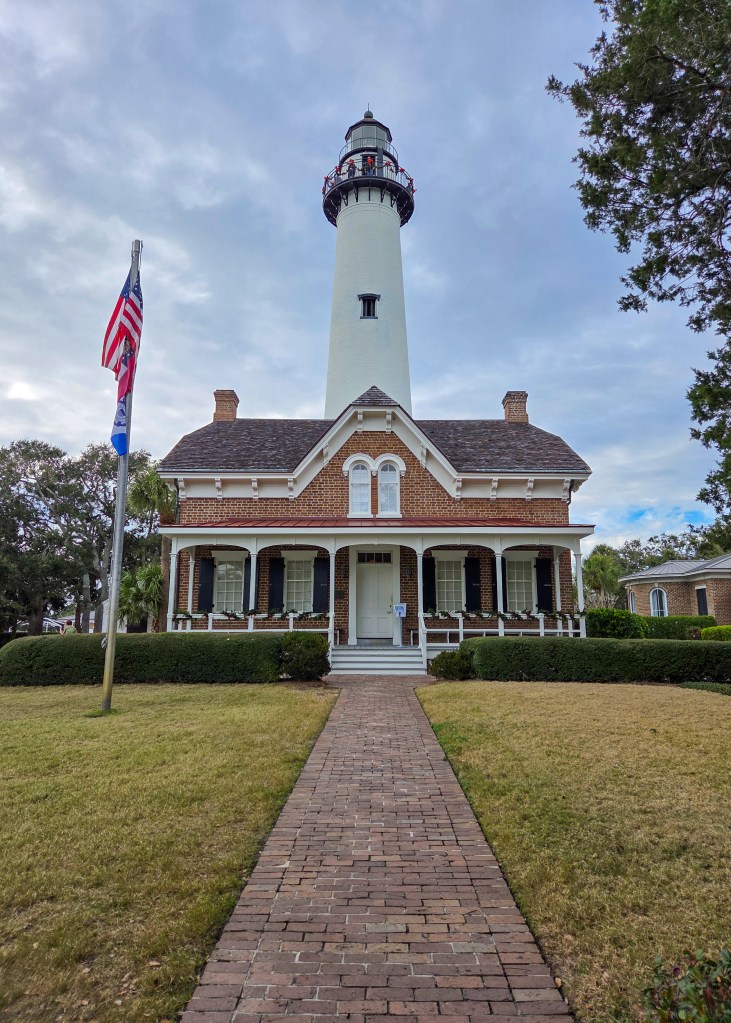 The next island we visited was a stone’s throw away, St. Simons Island, and two historic sites offer a fascinating glimpse into the island’s maritime and colonial past. The St. Simons Lighthouse and Museum, located in the charming Pier Village, stands 104 feet tall and has guided ships along the Georgia coast since its rebuild in 1872 (the original 1810 tower was destroyed by Confederate forces during the Civil War to prevent Union use). Visitors can climb the 129-step spiral staircase to the top for sweeping panoramic views of the coastline, Jekyll Island, and the Atlantic.